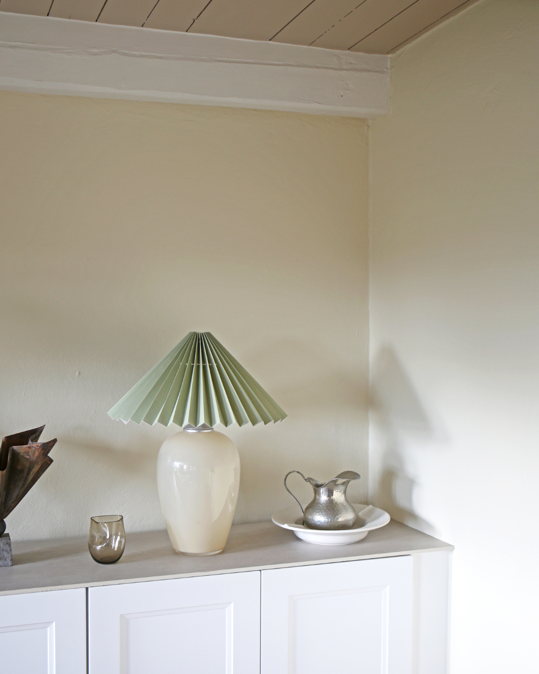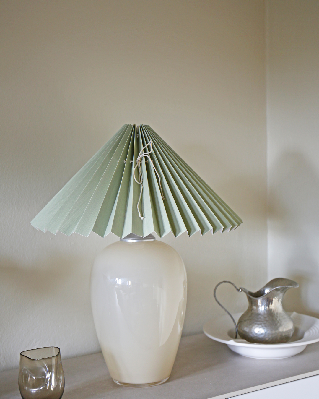Anne Sofie i beige med støvgrøn skærm