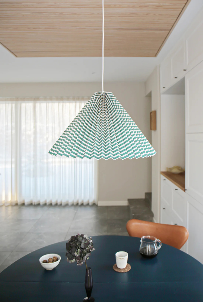 Den mønstrede pendel er ideel over spisebordet, i køkkenet, i entreen eller i et hjørne, hvor du ønsker et udtryk, der både er eksklusivt og legende. Skærmen giver et blødt, behageligt lys, og de lette materialer gør pendlen nem at hænge op.